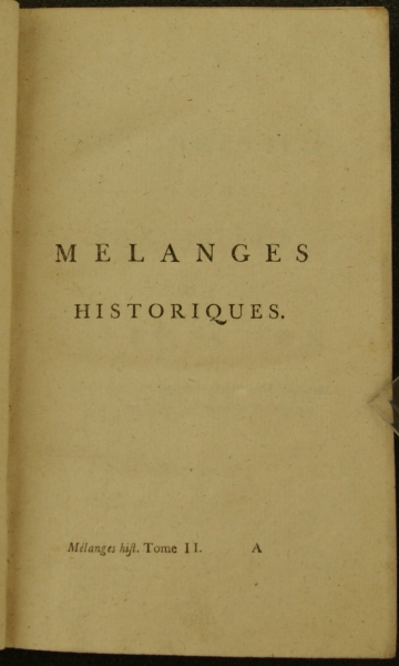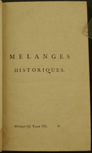 MELANGES || HISTORIQUES. || [kursywa] Mélanges hiʃt. Tome III.