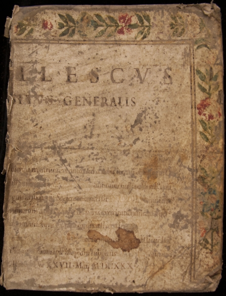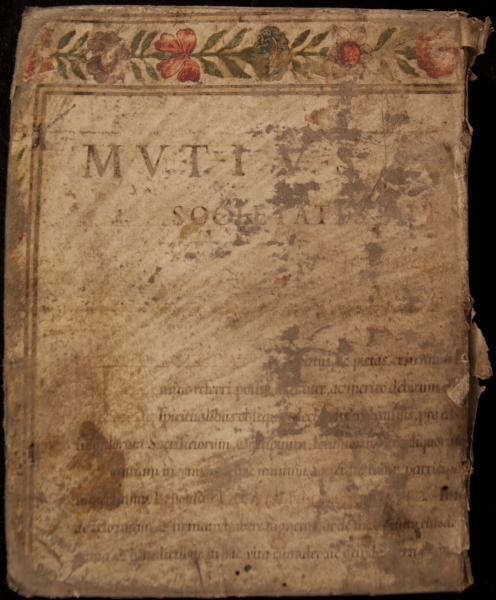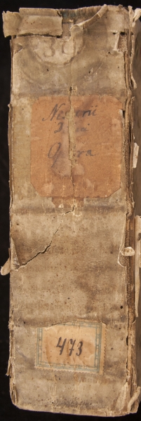 pergamin ponownie użyty, przebija poprzedni tekst oprawa uszkodzona na grzbiecie