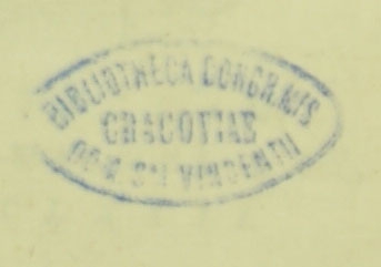 św. Wincentego a Paulo, Kraków (dokończenie identyfikacji) niebieska pieczątka w kształcie poziomego owalu; odpis: BIBLIOTHECA CONGR. MIS. || CRACOVIAE || DOM. STI VINCENTII