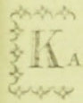inicjał K otoczony z trzech stron abstrakcyjnym ornamentem